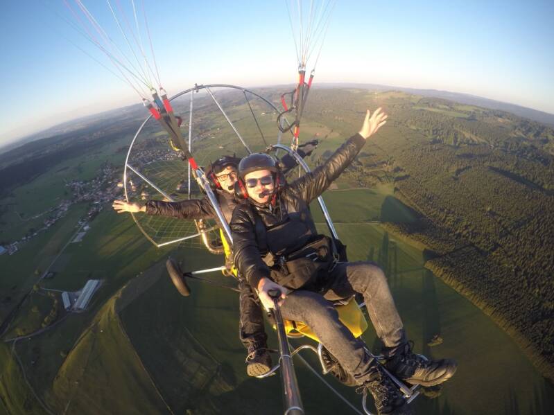 C'est facile, en effectuant un baptême en paramoteur avec TERCIEL Adventure Paramoteur Mulhouse. Prenez place à bord du chariot fun flyer (petit chariot jaune en photo ci-contre) avec l'un de nos instructeurs pour faire un vol biplace et décollez !